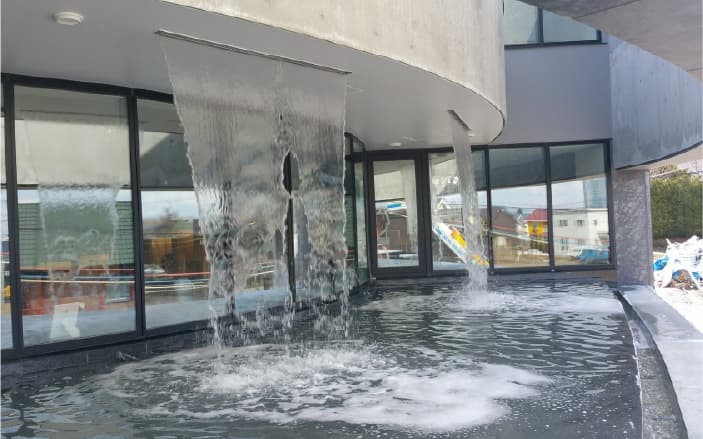 自然な水の流れを演出する人工滝型水演出