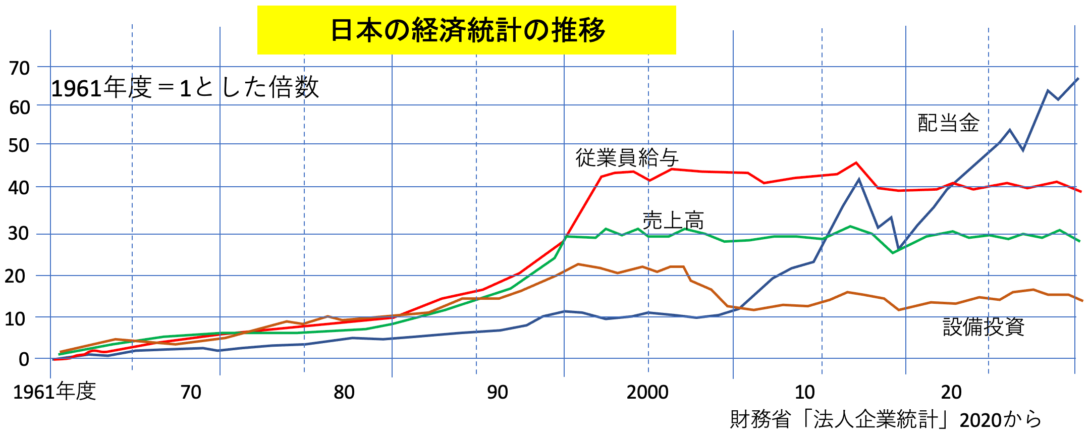 1990 年代には配当水準の低さが問題視されていましたが、その後、海外投資家の圧力に応じることで急増することになりますが、従業員への給与は逆に 15%減ることになりました。